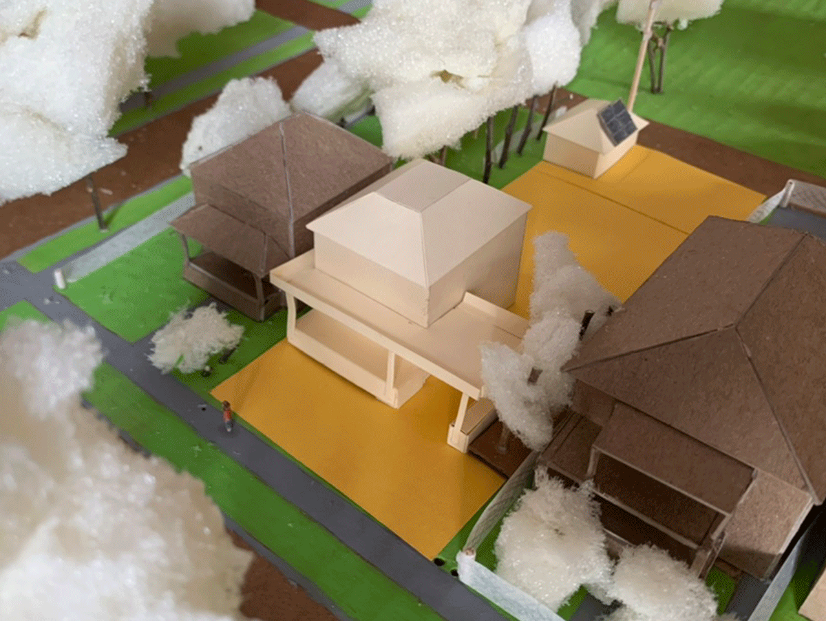 There’d be more time to test this out once we got to making the larger 1:50 scale (1/4″ equals 1′) model. But before that, we had to design the outdoor space.