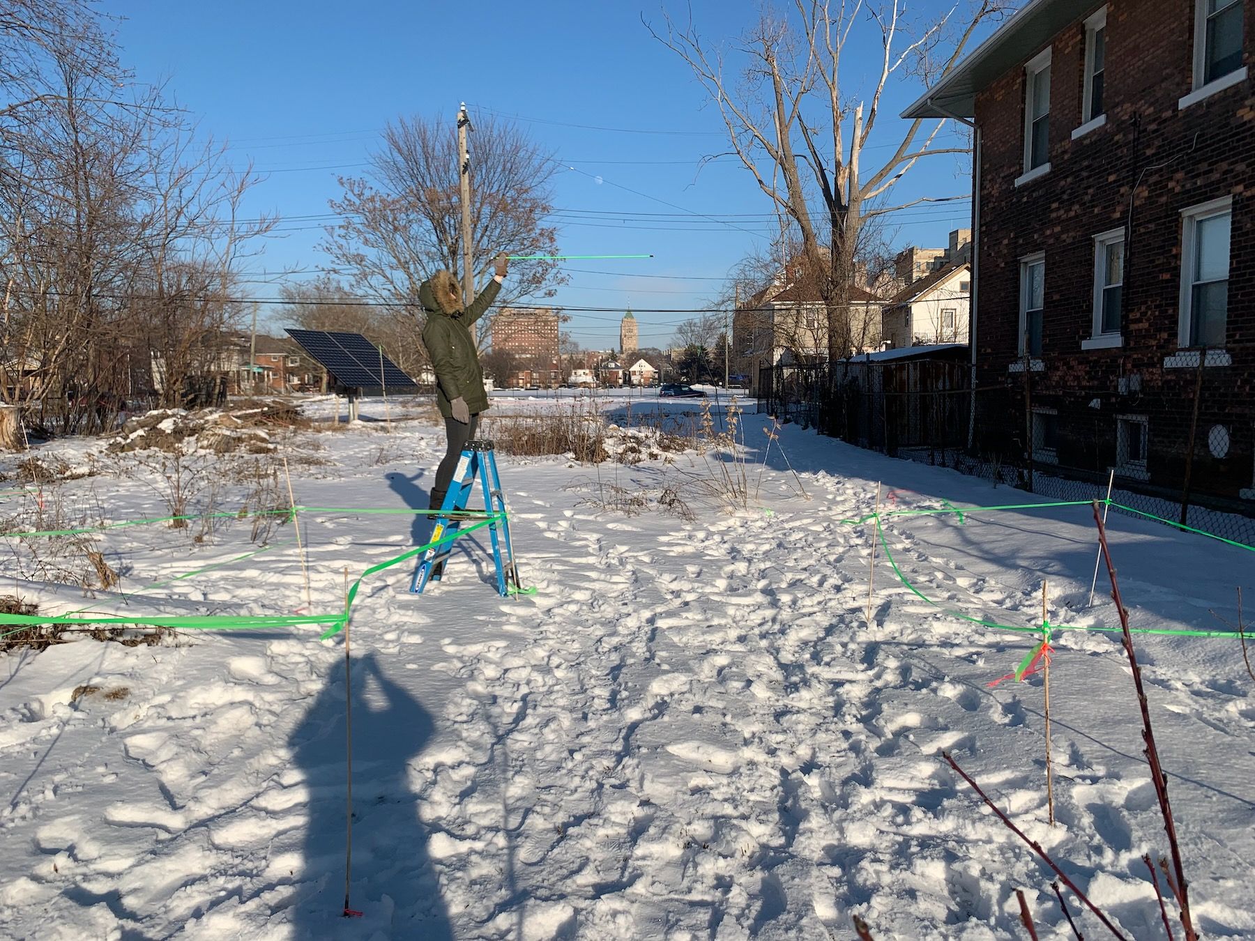 It was really hard to not think about the house as I was staking out the garden. The first time I did it I misunderstood the instructions and thought we were supposed to stake out the house. Artists and graphic designers might relate to the feeling of having to learn, over time, to see the negative space as positive. The stakes, once linked with bright surveyor’s tape, helped a lot with visualizing these different volumes of space, these outdoor rooms.