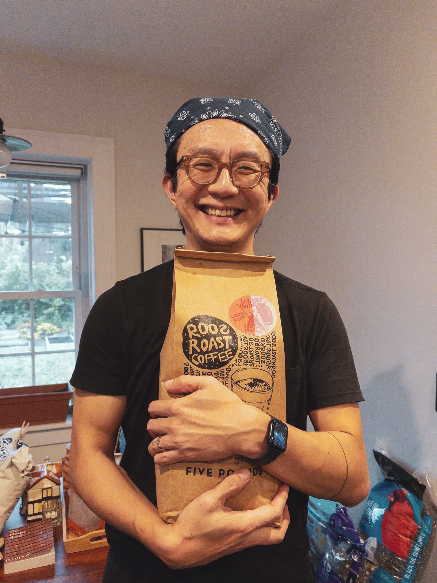 That’s two Sunday letters in two weeks! You’d almost think things were normal around here. To end, here’s a photo of yours truly holding that five-pound lo-caf coffee baby.